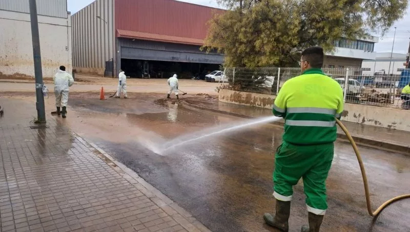 Tras la primera fase que comenzó el 9 de noviembre de retirada de vehículos, lodos, arrastres y voluminosos, que impedían el acceso a las áreas y a las naves industriales, las tareas se centran en la retirada de pequeños acopios de barro y de enseres que depositan las empresas en los viales y en el baldeo de calles para recuperar su aspecto inicial.