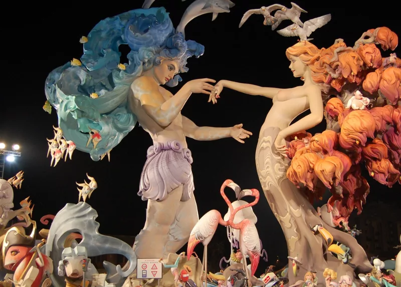 Las fallas son una fiesta popular que se celebra en Valencia desde el siglo XIX. La tradición consiste en la construcción de monumentos artísticos y escultóricos, que son exhibidos durante la semana de las Fallas y luego son quemados el 19 de marzo, durante la Noche de San José, día anterior al equinoccio de primavera. La festividad tiene sus raíces en la práctica de quemar objetos viejos y usados a finales del invierno para limpiar y renovar la casa, una antigua costumbre de los carpinteros de aquella época. Con el tiempo estos objetos se convirtieron en monumentos artísticos y culturales muy importantes en Valencia.