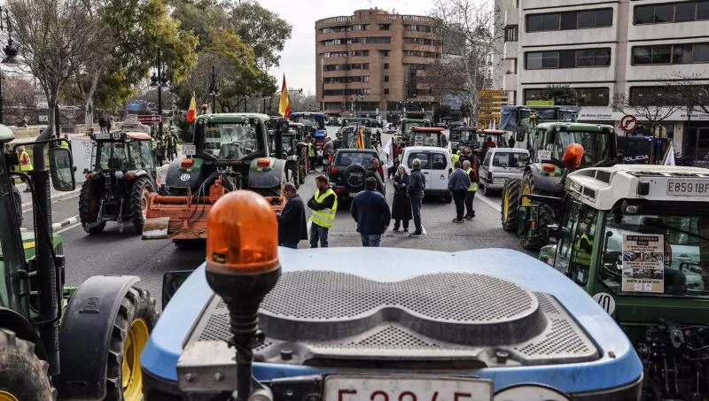 La protesta se enmarca en la convocatoria a nivel nacional realizada por la Unión de Asociaciones del Sector Primario Independientes (Unaspi), en la que han participado agricultores de l'Horta, Utiel-Requena, la Ribera y la zona de Vila-real y Nules, ha detallado a Europa Press el portavoz de la Plataforma de Llauradors i Ramaders de l'Horta de Valencia, perteneciente a Unaspi, Vicente Alegre.