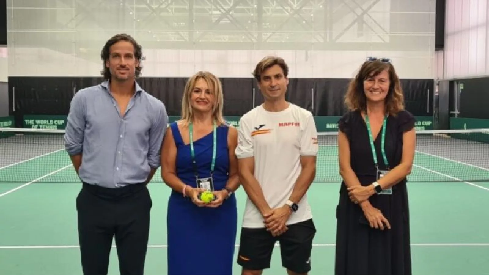La consellera de Innovación, Industria, Comercio y Turismo, Nuria Montes, ha visitado las instalaciones de la Copa Davis 2023 y ha inaugurado el punto de información turística de la Zona del Fan Club, acompañada por el capitán del equipo español, David Ferrer.